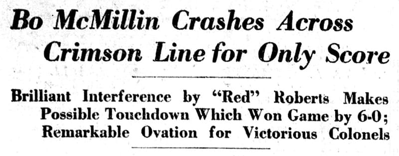 Arrow pointing to third quarter action by "Col. McMillin" Bo had been made a "Kentucky Colonel" by Governor Edwin P. Morrow in 1920, thus the "Col. McMillin"