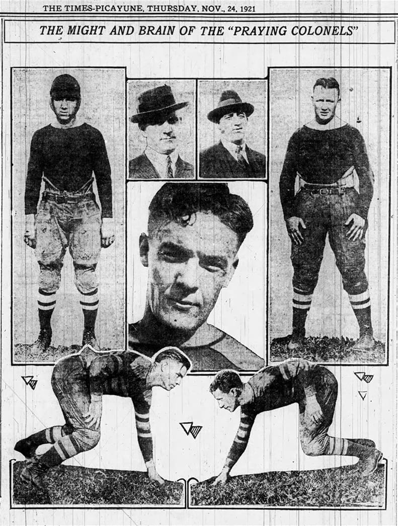 Caption under the photograph- "The Praying Colonels are perhaps the greatest collection of football players in the entire country."