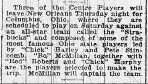 That made no sense to the Chief. The previous year's contest had been a sellout, and the 1921 game would generate the same type of revenue. Nonetheless, DePauw wanted out, Tulane heard about it, and an offer came up from New Orleans that Centre found satisfactory. So it was off to New Orleans to play the Tulane "Green Wave."