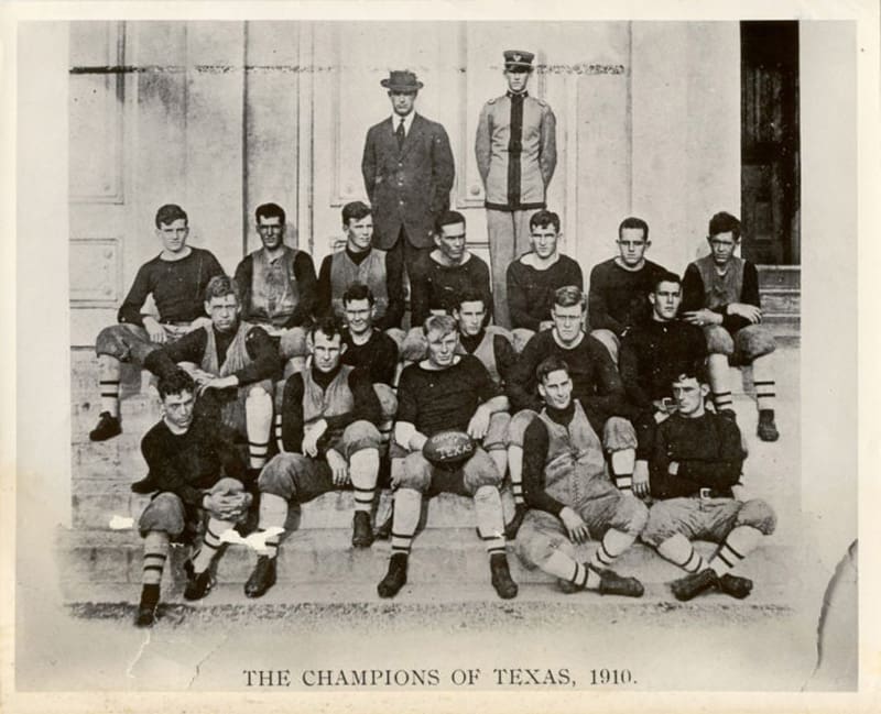 Uncle Charlie's 1910 team which was 8-1 with an important 14-8 win over Texas. The only loss was to Arkansas, 5-0, played in Fayetteville. Uncle Charlie at top with suit and hat.