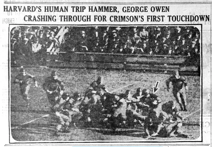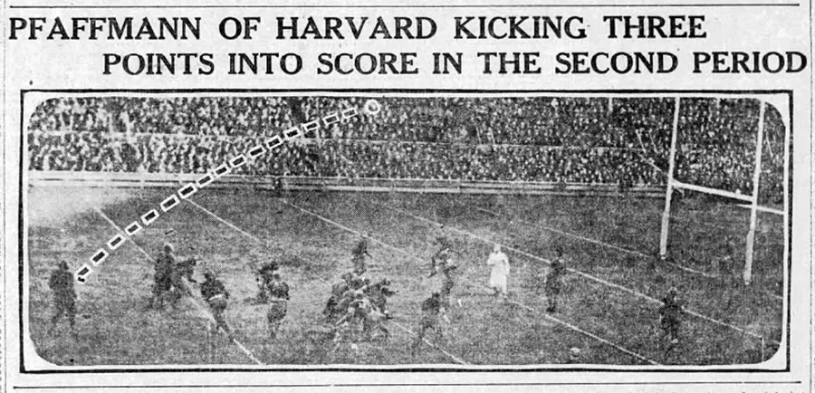 On the 1st offensive play of the afternoon for Harvard, George Owen, the great fullback, drove across for a score, Buell drop-kicked the extra point, and with less that a minute gone, Centre was down, 7-0.