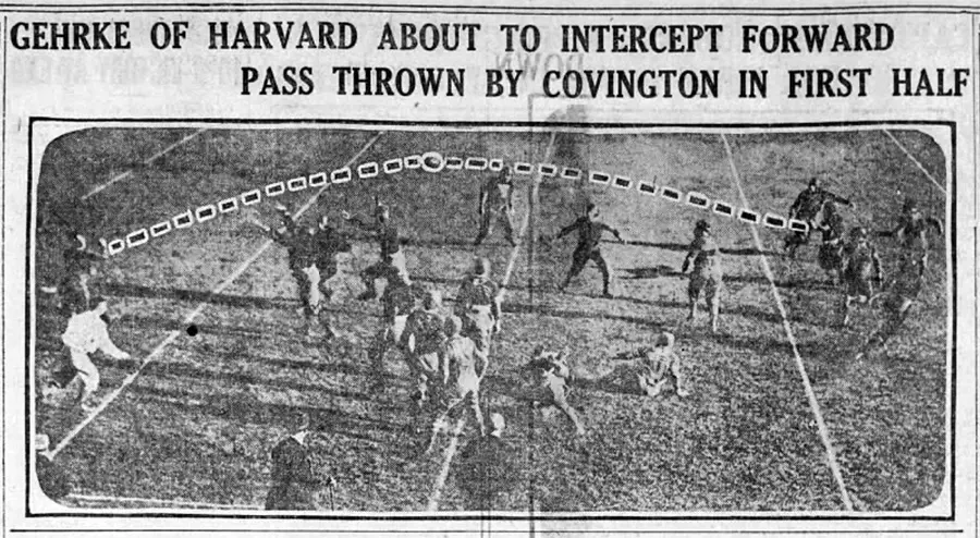 After an exchange of punts which ended up being much in Harvard's favor, the Crimson had 1st and 10 on the Colonels' 40. From this point, Harvard mounted a sustained drive down the field, first Owen, then Gehrke, then Chapin. After 10 straight gainers, Gehrke crashed over. Buell was good again and it was Harvard, 14-0.